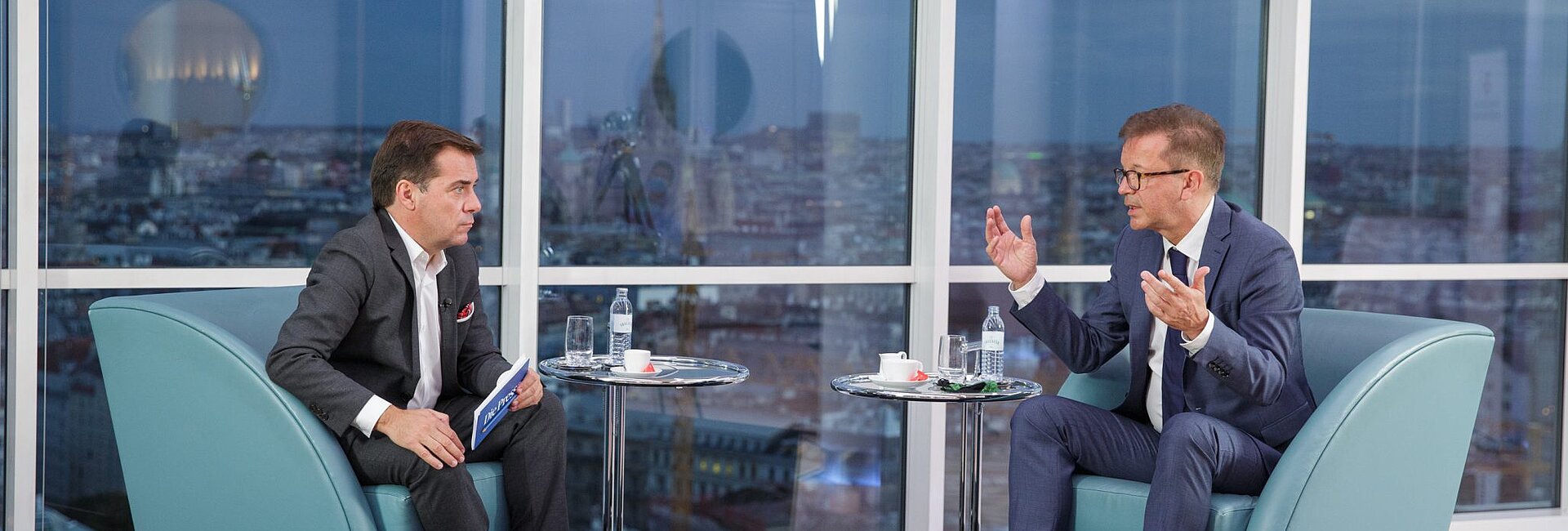 Wiener Städtische Versicherungsverein invited Rudolf Anschober (Austrian Federal Minister for Social Affairs, Health, Care and Consumer Policy) to the discussion series “Gespräch im Turm”, taking place in the 20th floor of the Ringturm.