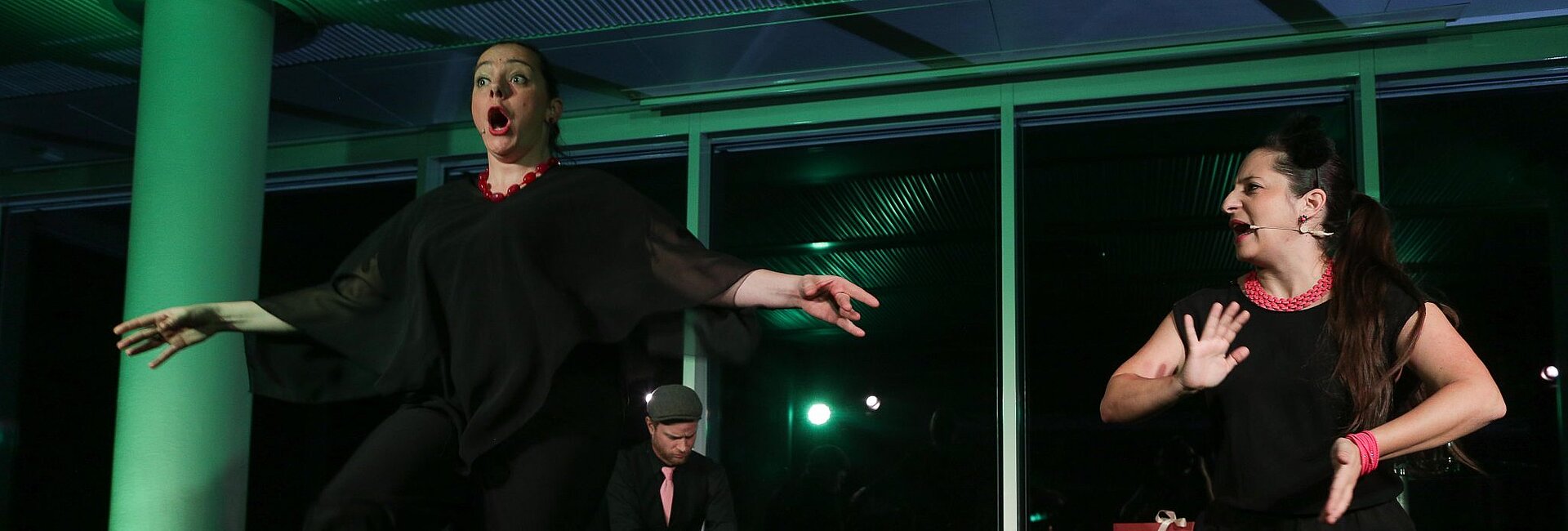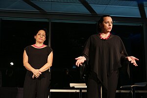 The female comedy duo with Styrian and Greek roots treated the audience to a “best-of” evening featuring past and new highlights from all of their shows, including Liederliebesreisen:Reloaded and Jagdlust. Seasoned musician Matthias Ellinger provided the accompanying piano music.
