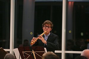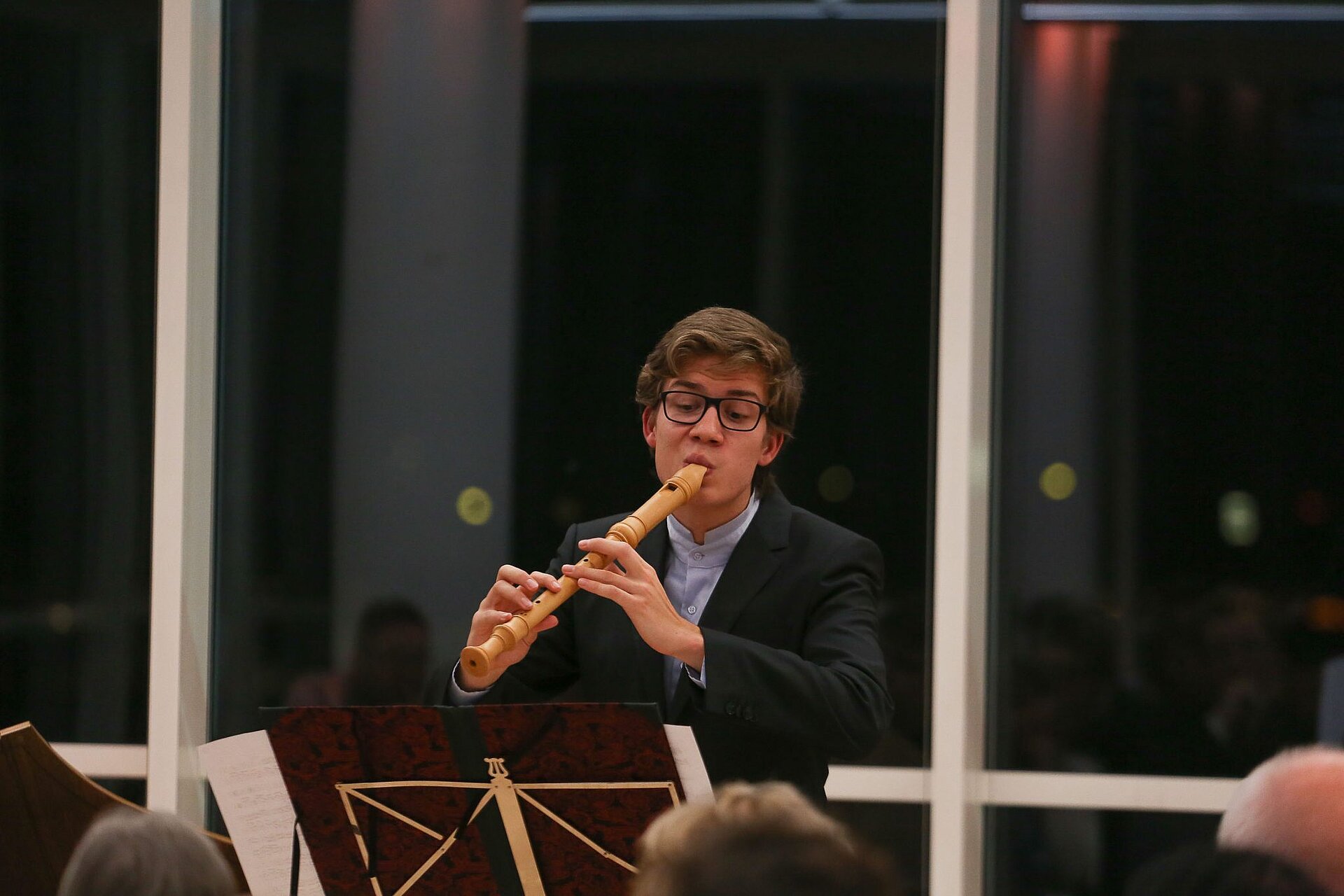 It was cheeky and loud, but just as contemplative and atmospheric on Tuesday evening, November 19, on the 20th floor of the Ringturm. At the invitation of Günter Geyer, Chairman of the Managing Board of Wiener Städtische Versicherungsverein, singer Michael Schade presented “Wenn Engel sich vergnügen …” (“When Angels amuse themselves…”) and engaged three exceptional young talents: soprano Momoko Nakajima, flutist Felix Gutschi and Reinhard Führer at the spinet.