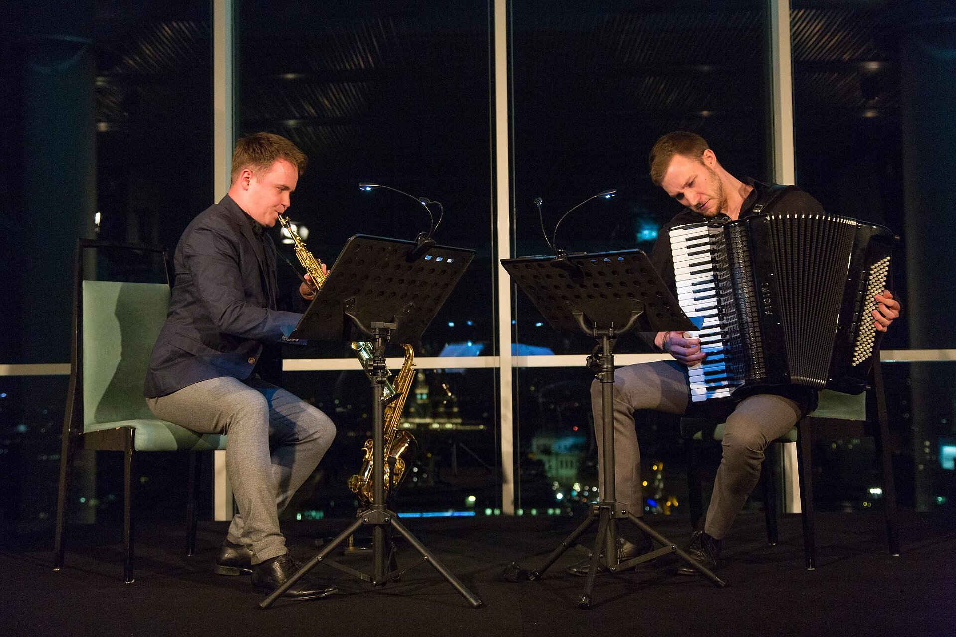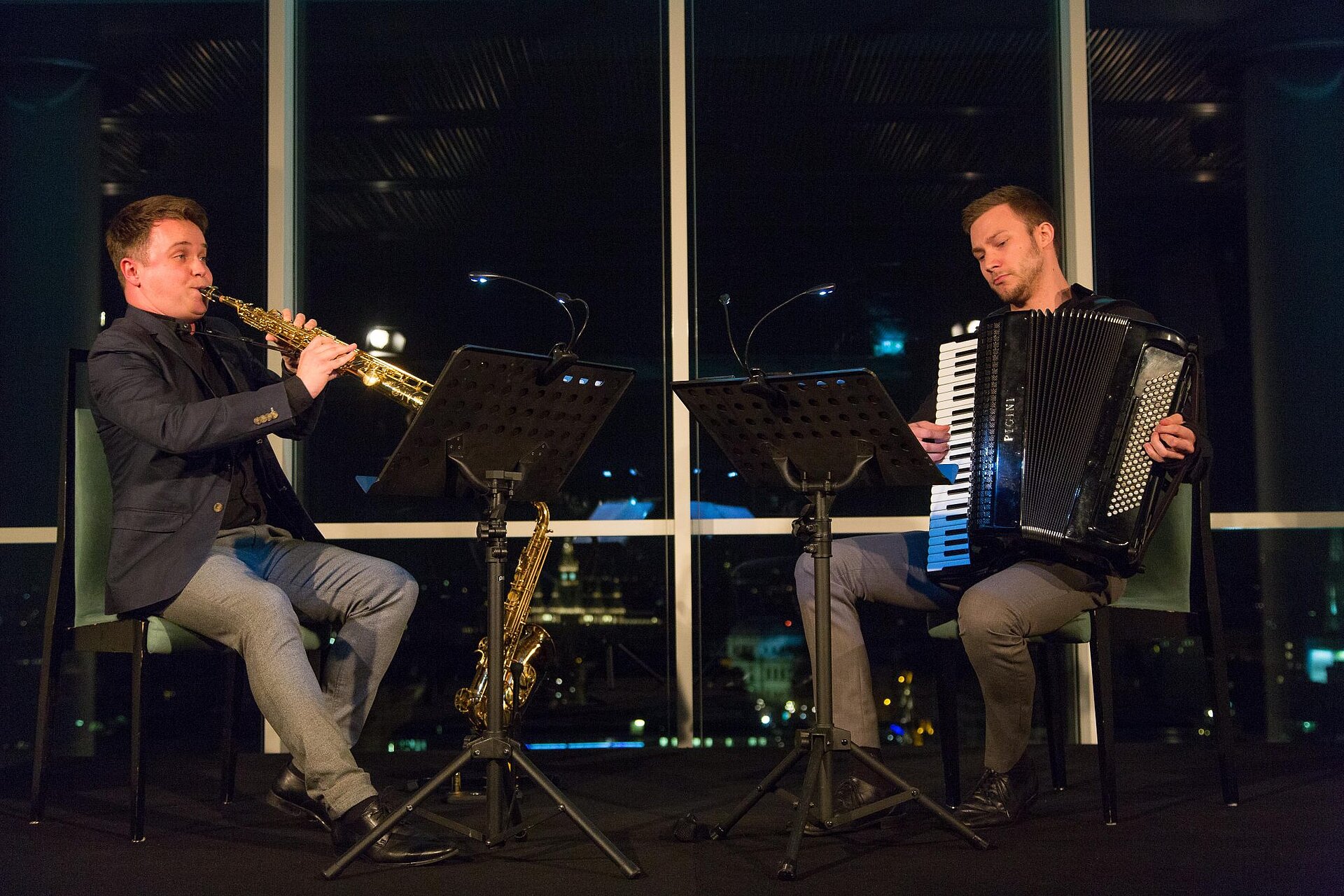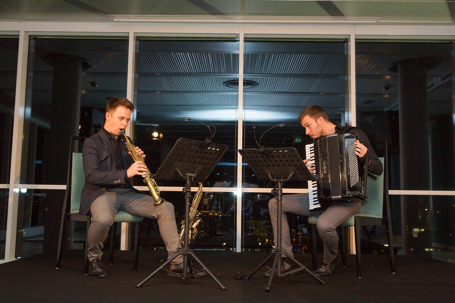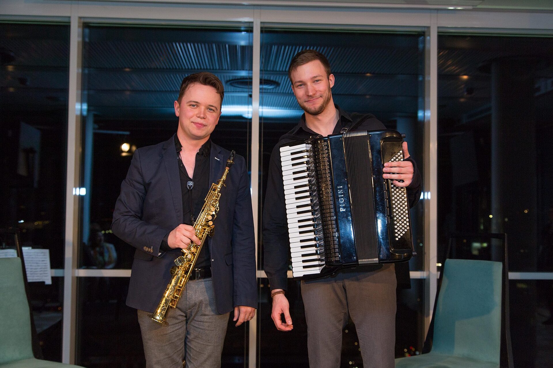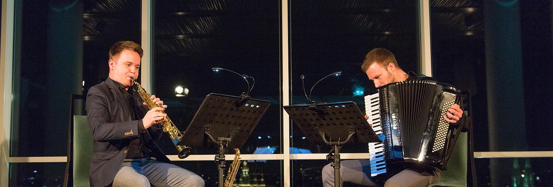 “Duo Aliada”, consisting of saxophonist Michal Knot and accordionist Bogdan Laketic, put together a program based on their debut album “New colours of the past“ and delighted the audience with compositions of Krzysztof Penderecki, Béla Bartók oder Edvard Grieg. The evening ended with flying dinner and a wine tasting with premium wines from the vineyard Schloss Gobelsburg near Langenlois.
