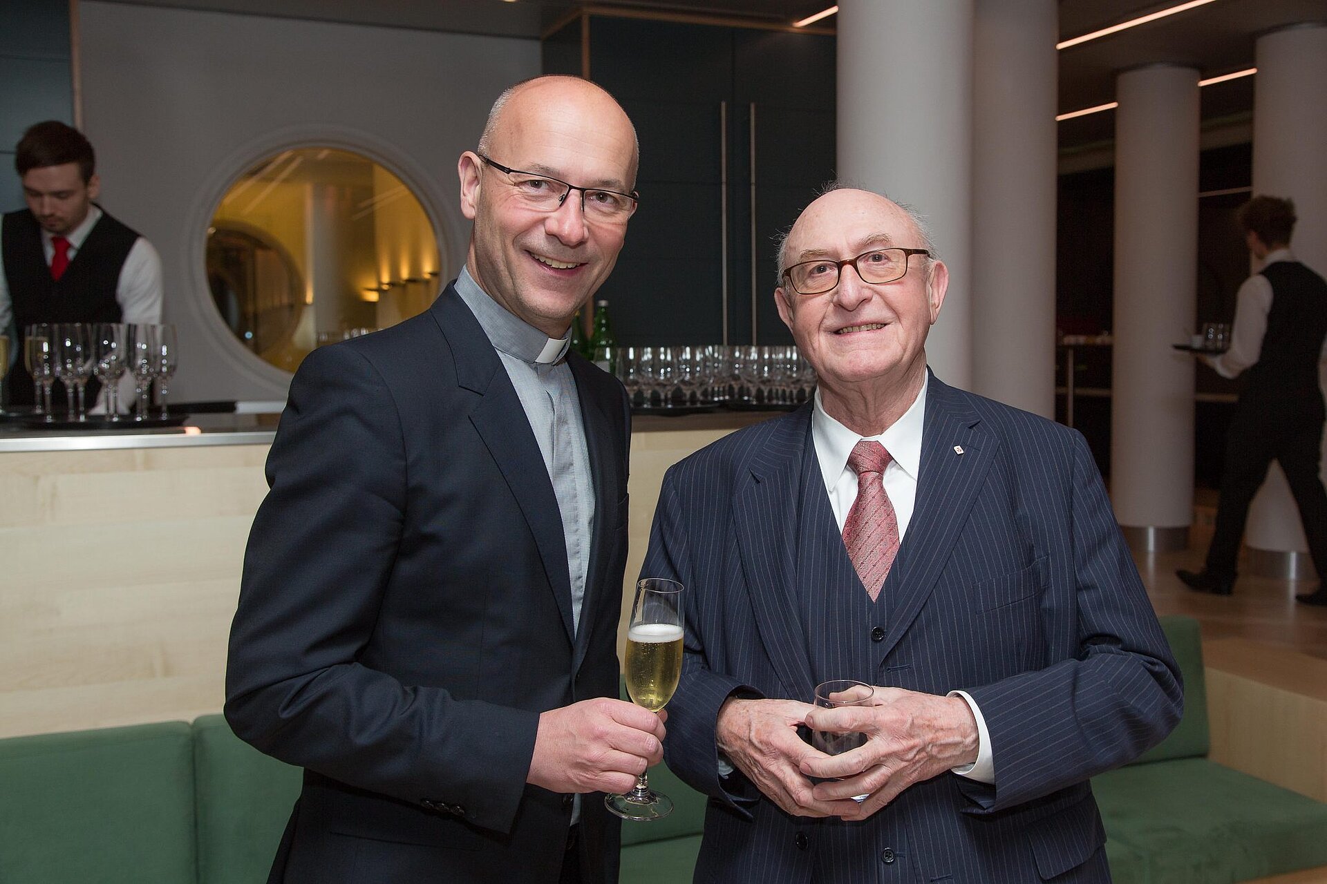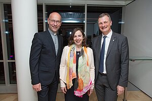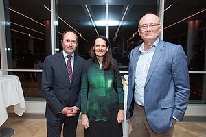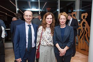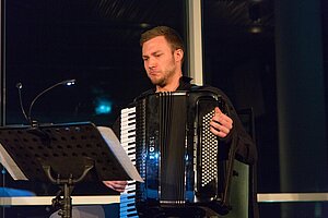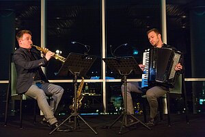 "Kunst im Turm": new colours of the past On the picture (from left to right): Saxophonist Michal Knot, Günter Geyer (Chairman of the Managing Board of Wiener Städtische Versicherungsverein) and accordionist Bogdan Laketic ("Duo Aliada"). © Wiener Städtische Versicherungsverein/APA-Fotoservice/Richard Tanzer