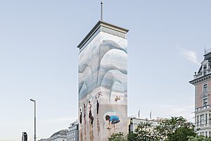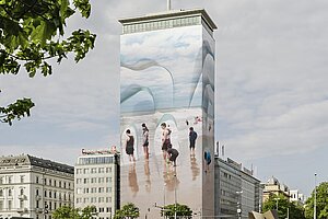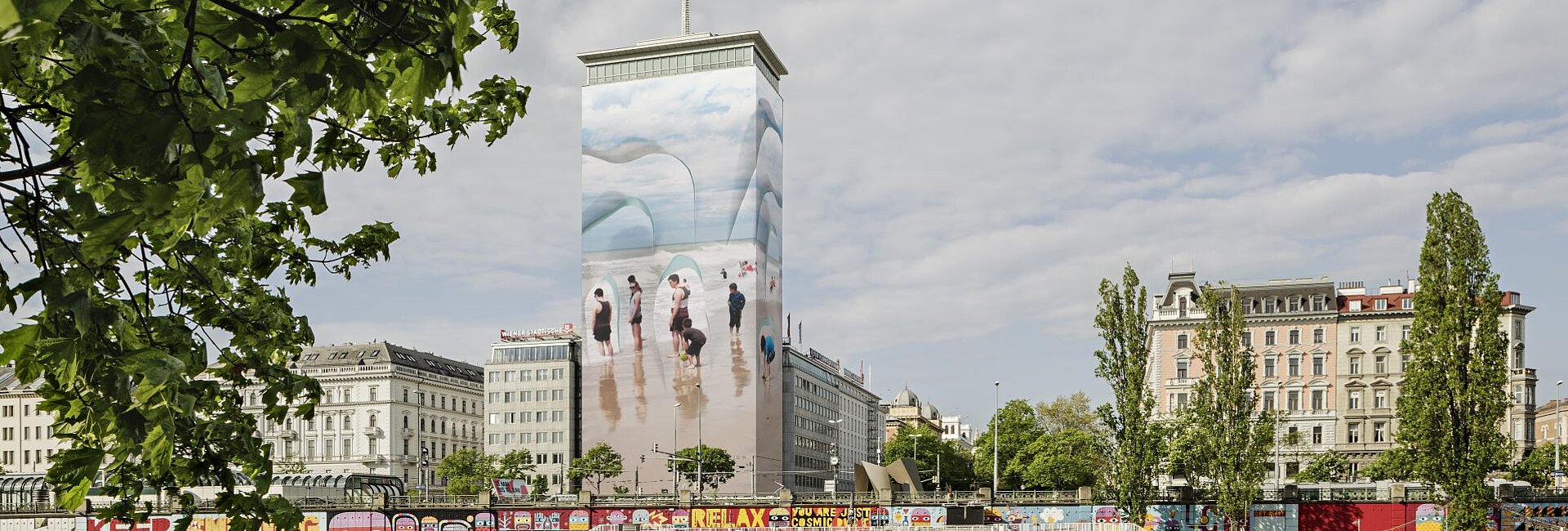 Commissioned by Wiener Städtische Versicherungsverein, this year’s artistic covering of the Ringturm brings a touch of seaside flair to the Danube Canal – while also subtly drawing attention to the problem of climate change.