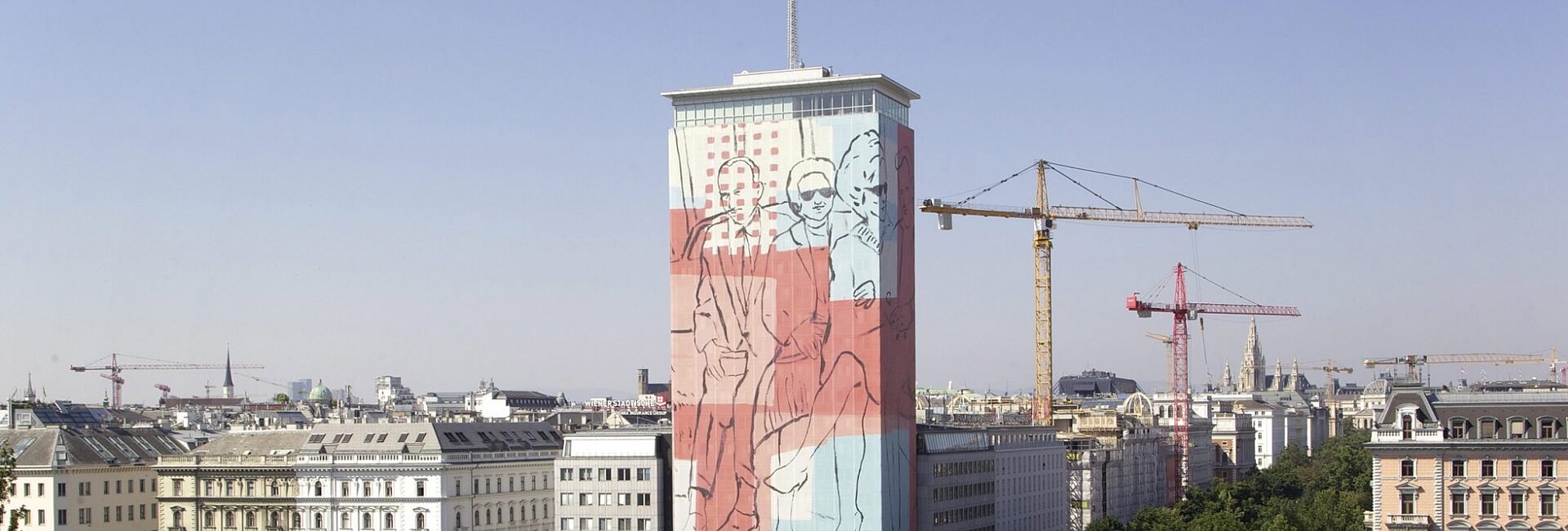 In 2012 Hungarian painter László Fehér transformed the Ringturm into a towering canvas with his creation Gesellschaft (Society). It was the first time that an artist from one of Austria’s neighbouring countries was commissioned to produce an exclusive work for the tower’s transformation.