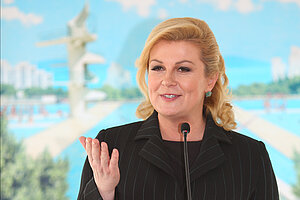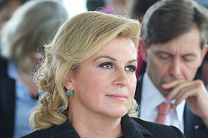 From left to right: Dr Günter Geyer, Chairman of the Managing Board of Wiener Städtische Versicherungsverein, Dr Heinz Fischer, President of the Republic of Austria, Kolinda Grabar-Kitarović, President of the Republic of Croatia, Artist Tanja Deman and Margit Fischer. © Wiener Städtische Versicherungsverein/Richard Tanzer