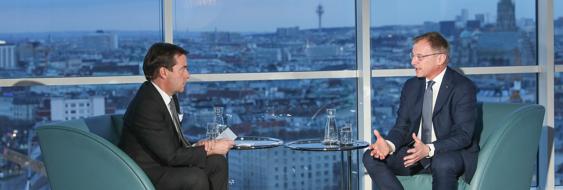 Der oberösterreichische Landeshauptmann Mag. Thomas Stelzer beim „Gespräch im Turm“ mit „Die Presse“-Chefredakteur Rainer Nowak.