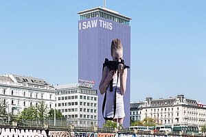 Ein besonderer Anlass – „100 Jahre Republik Österreich“ – und ein herausragender Künstler: Gottfried Helnwein verwandelt den Wiener Ringturm über den Sommer 2018 mit „I saw this“ in ein beeindruckendes künstlerisches Mahnmal. Die Fertigstellung der 4.000 Quadratmeter großen Kunstinstallation von Gottfried Helnwein am Ringturm wurde am Freitag, den 22. Juni, feierlich zelebriert.