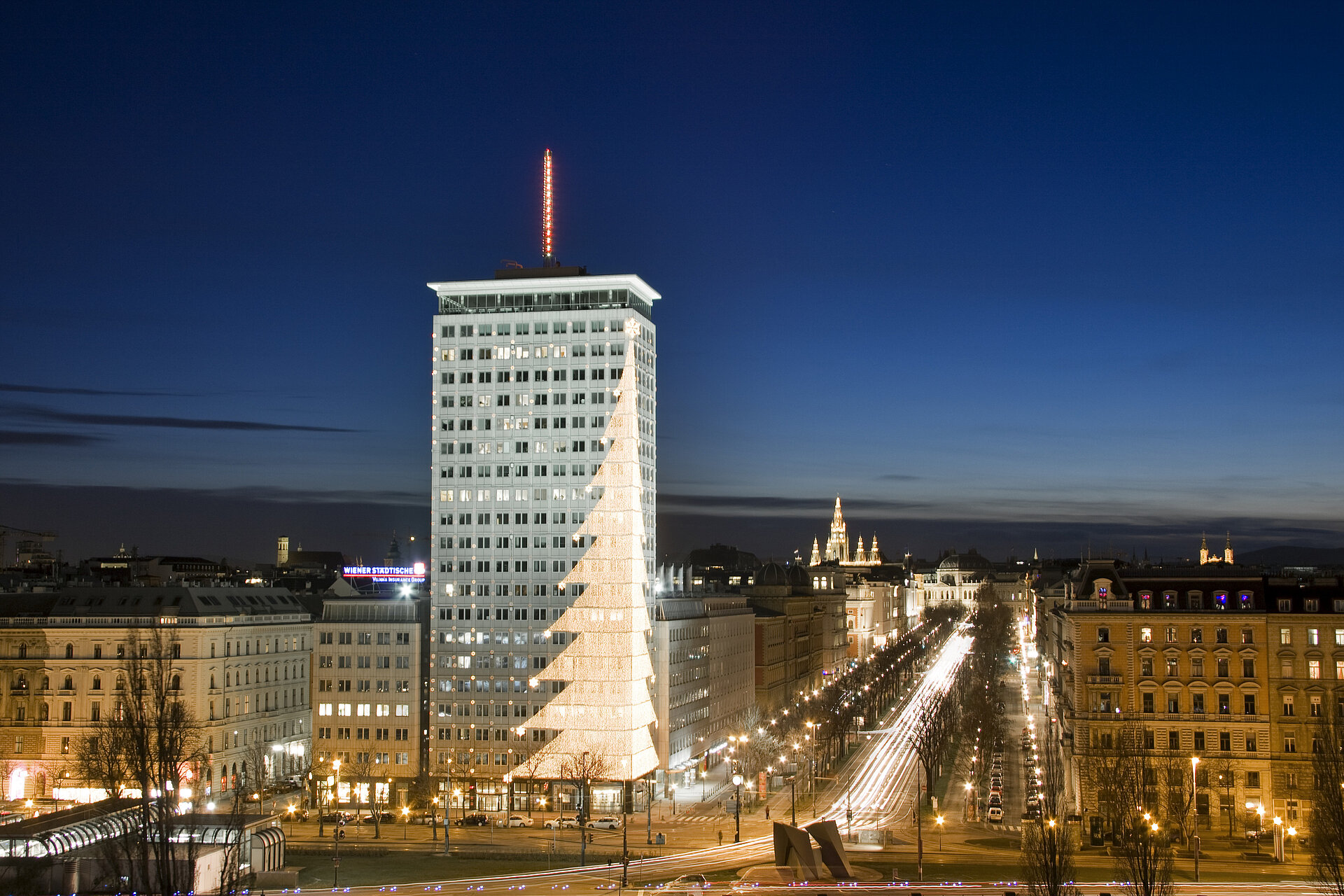 Der Konzertabend wurde offiziell durch den Gastgeber eröffnet: „Der heutige Abend steht ganz im Zeichen der Vorfreude auf das Weihnachtsfest. Ich persönlich kann mir dafür keinen schöneren Ort vorstellen als den Ringturm. Im Sommer ist er ein Kunstwerk und in der Weihnachtszeit ist er Wiens größter Christbaum“, begrüßte Mag. Robert Lasshofer, Vorstandsvorsitzender des Wiener Städtischen Versicherungsvereins, die Gäste. Seit 2003 erstrahlt der Ringturm in der Adventzeit als Wiens größter Christbaum, seit 2006 mit Schneeflocken an den Seiten und seit 2013 in moderner LED-Technik. Insgesamt sorgen 105.300 LEDs für das festliche Funkeln. Die Beleuchtung leuchtet täglich von 6:00 bis 8:00 Uhr und von 16:00 bis 23:00 Uhr. Für viele Wiener:innen ist der festlich erleuchtete Ringturm längst ein unverzichtbarer Teil der Weihnachtszeit.